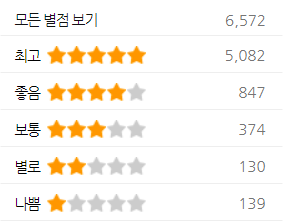 ★★★★★ 5점 (5,082 / 6,572) : 82.92%